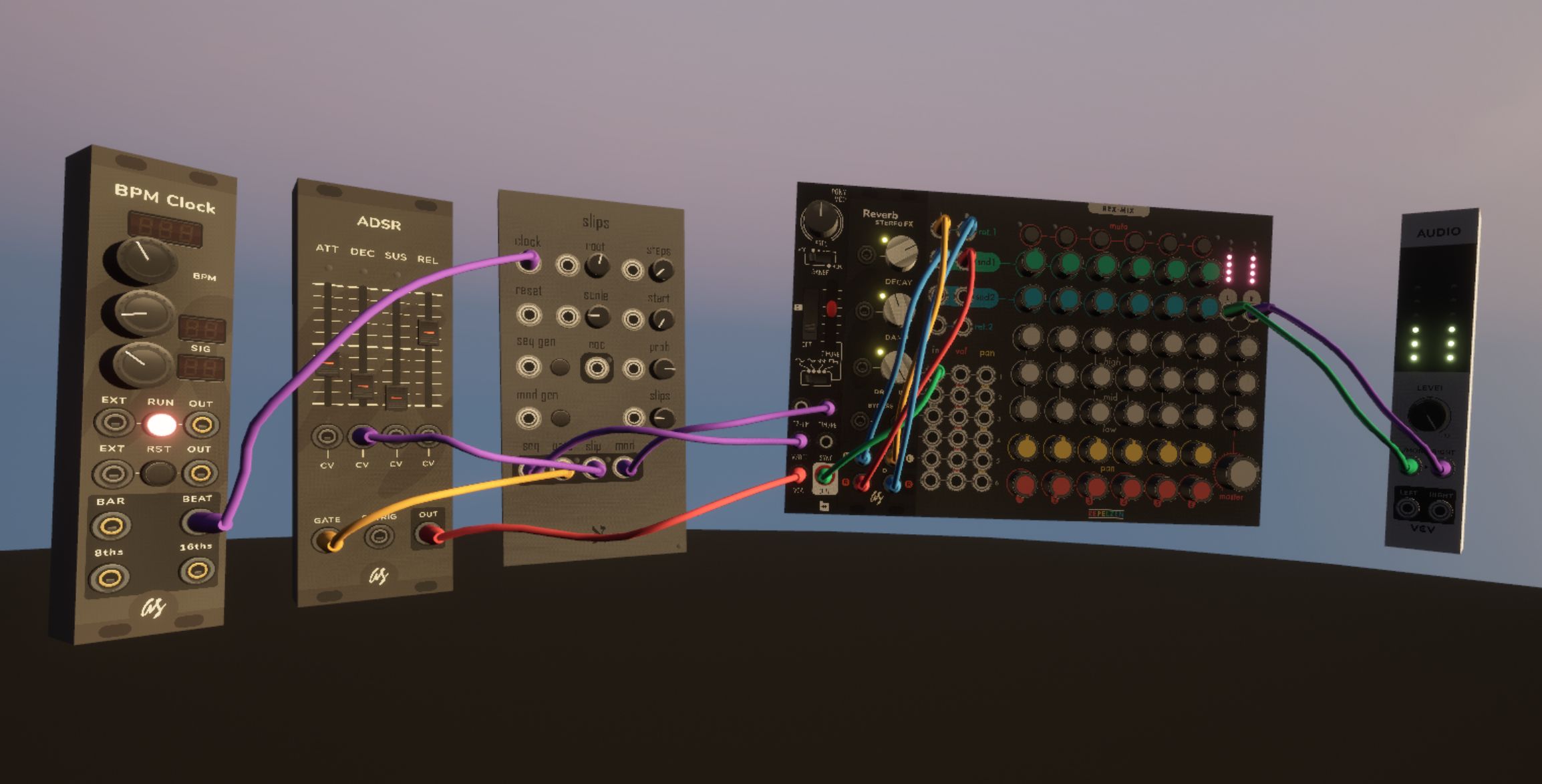 Needs more gravity? Eventually, I figure out a good combination of amount of stiffness and number of segments and, rather than gravity, a direction of force relative to the two ports the cable is connected to to make the cable billow out in a realistic way. I also implement a timer system so I’m only doing any expensive simulation while a cable is being manipulated and for a second or so afterward, after which the cable sleeps.